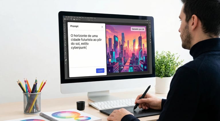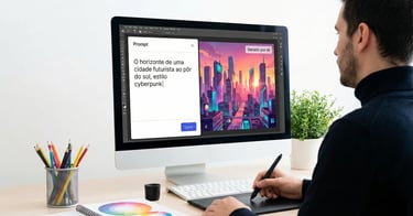Geração e Edição de Imagens com IA: Designers e criadores de conteúdo usam ferramentas como Midjourney ou DALL-E para criar moodboards, remover fundos de fotos instantaneamente ou gerar ilustrações vetoriais para apresentações em minutos.